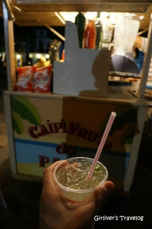 단 하나 불 밝히고 있는 노점은 어제의 까이비리냐(Caipirinha)를 마셨던 그곳이다. 상큼한 레몬향과 사탕수수 증류주인 삥가(Pinga)의 맛이 생각나 군침이 고인다. 어제 두 잔이나 먹었던 터라 기억하는 아저씨와 눈인사를 주고받으며 한 잔 사들고 바다로 간다. 이상하리만큼 까이삐리냐가 나에겐 잘 맞는다.
