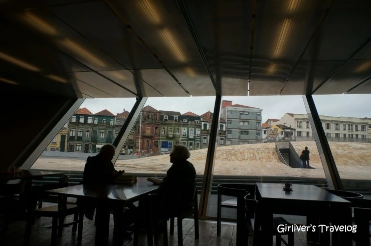 카사 다 무지카 앞에는 호스텔의 워킹투어같은 프로그램으로 온 사람들이 사진을 찍고 있다. 호스텔 직원이 이곳을 추천해 주며 꼭 가보라고 한 이유가 있었다. 직육면체의 모서리를 과감히 깎은 듯한 건물의 외양은 파격적이다. 포르투의 아름다운 건물들과 마주보는 카사 다 무지카의 초현대적인 디자인이 묘한 조화를 이룬다.