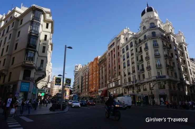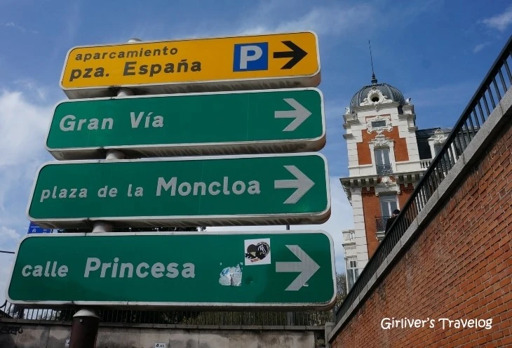 에스파냐 광장(Plaza de Espana) 역을 가리키는 메트로 안내판마저도 아름답다. 여기부터는 그랑비아(Gran Via)가 시작된다. "큰길'이라는 뜻의 그랑 비아는 마드리드 최대의 번화가다.