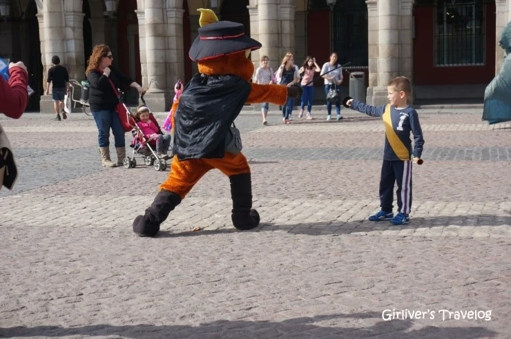 떠나는 상념으로 골목을 쏘다니다가 다시 솔 광장으로 온다. 해가 넘어가면서 긴 그림자를 드리우지만 공중부양 퍼포먼스는 여전히 계속 중이다. 저렇게 하루 종일 있으면 어쨌든 힘이 들 것인데, 얼마나 호기심을 자극했느냐에 따라 노동의 대가가 결정될 것이다. 어제 처음 봤을 땐 신기하기만 했는데, 오늘 다시 보니까 막상 가면 속 그들이 궁금해진다.