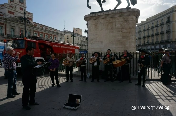 기마상 아래에선 아예 악단(?)이 버스킹(busking) 중이다. 여러 사람이 연주하는 아름다운 선율이 사람들의 발길을 잡아끈다. 광장의 메트로 입구에선 달변의 아저씨가 뭔가 재미있는 이야기를 하고 있다. 얼마나 이야기를 감칠맛 나게 하는지는 겹겹이 주위를 둘러싼 사람들의 반응을 보면 알 수 있다. 사람들 사이를 비집고 들어갔다가 조용히 빠져나온다. 거기 서서 참여하고 싶지만 스페인어를 알아듣지 못하는 내겐 소음일 뿐이다. 그래도 관광객뿐 아니라 현지인들이 즐기는 이 광장의 흥청거림이 보기 좋다.