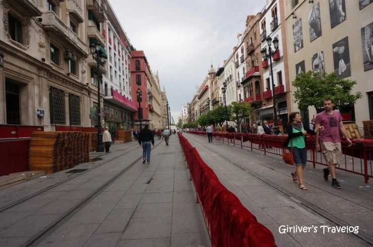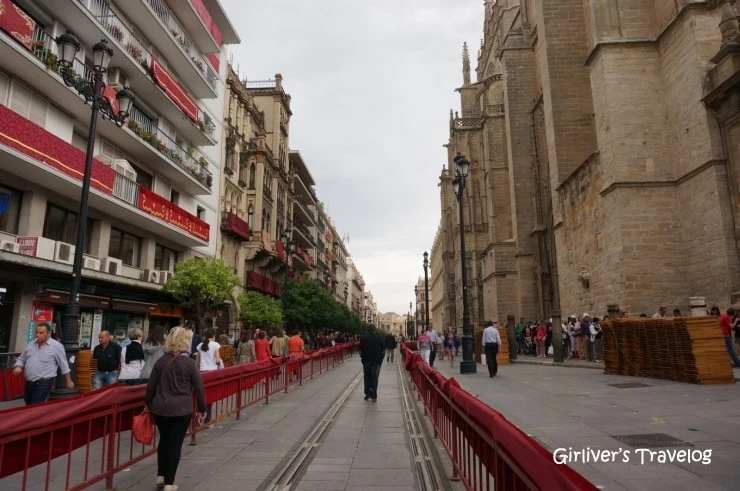 아침에 봤던 빨간 휘장이 둘러진 거리에는 어느새 의자가 가득 차 있다. 아마도 무슨 행사가 있는 것 같다. 세비야가 축제의 흥분으로 들썩이기 시작하는 것을 보며 호스텔로 돌아간다. 호스텔도 축제를 즐기러 온 사람들로 북적인다. 성장한 문화적 배경이 서구권이거나 종교가 가톨릭이라면 오늘의 세비야는 더욱 진한 감동일 것이다. 동양에서 온 이방인에, 종교와도 거리가 먼 나도 이렇게 설레는 걸 보면 말이다.