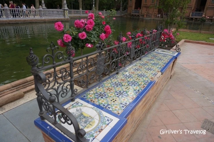 과연 에스파냐 광장은 세월이 무색하리만큼 아름다운 자태를 유지하고 있다. 어느 왕궁 정원에 들어선 것 같은 착각이 든다. 강물이 흐르는 광장 주변에는 타일로 장식된 아름다운 다리와 벤치가 사람들을 기다린다. 앉기에도 황송(?)한 우아한 타일 위에 앉아본다.