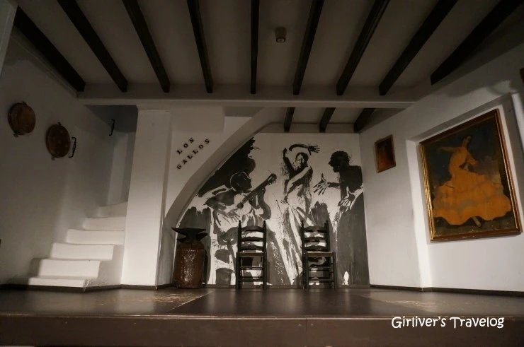 예매할 때 예매번호가 1번이어서 사람이 너무 적으면 어쩌나 했던 걱정은 기우였다. 로스 가요스(LosGallos)라는 이 공연장은 세비야에서 가장 오래된 타블라오(Tablao : '판자를 깔다'라는 뜻으로 플라멩코 무대를 뜻함)라고 하더니 역시 명불허전이다. 그리 크지 않은 객석은 금세 꽉 찬다. 샹그리아를 한 잔을 주문해서 앞자리에 앉는다. 작은 무대가 전부라서 과연 어떤 공연이 될지 궁금하다.