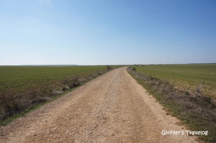 고지대여도 평탄면이라 가야 할 길이 바로 보인다. 나무 그늘도 없는 건조한 길에는 흙먼지가 날리고 돌멩이가 뒹군다. 가도 가도 보이는 것은 지평선과 밀밭이다. 이 넓은 땅에 밀이 익어 가면 볼만한 풍경이긴 하겠지만, 지루할 정도로 변함없는 풍경과 지평선 끝까지 걸어야 하는 길이 그대로 드러난다.