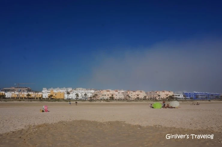 아직 본격적인 휴가철은 아니라서 관광객이 많지는 않고 계절도 여름이 아니지만 수영을 즐기거나 비키니 차림으로 선탠하는 사람들이 보인다. 고운 모래에 발을 파묻고 해변을 걸어보기도 한다. 불과 몇 시간 전 탕헤르에서는 히잡을 두른 젊은 여자와 남자가 경찰에게 잔소리 듣는 것을 목격했다. 피에르 아저씨 말이 모로코에서는 공공장소에서 남녀가 애정행위를 과하게 하면 경범죄로 처벌받을 수 있다고 한다. 같은 바다를 지척에 두고 달라도 너무나 다른 풍경들이다.