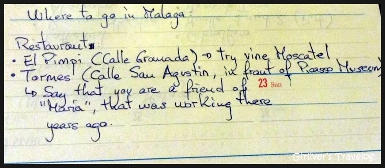 합창이 끝나고 발걸음을 돌려 피카소 미술관 앞을 찾아간다. 마리아가 내 수첩에 "말라가에서 가야 할 곳 - 레스토랑 편"에 적어놓은 토르메스(Trmes) 레스토랑을 찾아간다. 주문을 하고 나서 웨이터에게 몇 년 전에 이곳에서 일했던 마리아를 아느냐고 묻는다. 웨이터는 무슨 말인지 모르는 얼굴로 고개를 갸우뚱거린다. 하긴 마리아라는 이름은 너무 흔하다. 아이패드에 저장된 마리아의 사진을 보여주니 그제야 안다며 웃는다. 그녀가 지금 모로코에서 휴가 중이고 나와는 그곳에서 만난 친구라고 이야기하니 그는 너무 부러워한다.