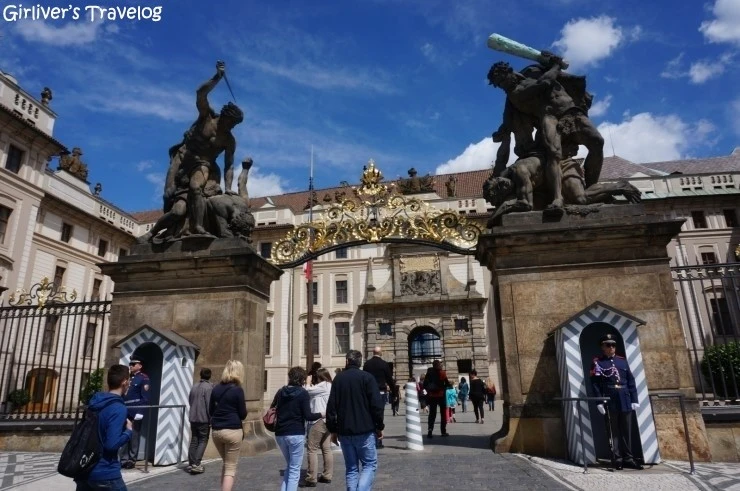 구름이 많던 어제보다 훨씬 화창한 오늘의 프라하성은 더 아름답다. 어제는 앳된 근위병이 서 있어 상큼했는데 오늘 서 있는 두 사람은 배도 나오고 나이도 있어 보이는 것도 재미있다. 프라하성은 어제 둘러보았으니 티켓을 사지는 않고 한 번 건물 외부를 둘러보고 나온다. 어제는 입장만으로도 흥분해서 몰랐는데, 오늘 와서 생각해보니 황금소로 같은 조그만 골목에 돈을 내야만 들어가야 하는 구조는 씁쓸하긴 하다.