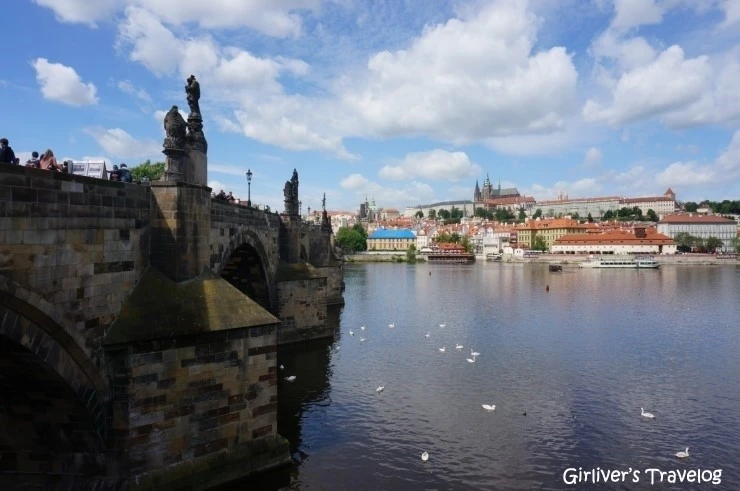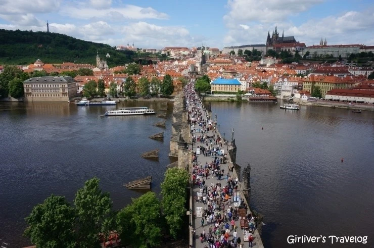 아기자기한 매장들과 아름다운 거리를 인파에 휩쓸려 걷는다. 매일이 축제일 것 같은 프라하 구시가지만 오늘이 토요일이라 특히 사람이 많다. 어제는 트램을 타고 프라하성에 올랐으니 오늘은 프라하의 봄을 만끽하며 카를 다리(Karlův most)를 건너갈 것이다. 이런 아름다운 도시는 천천히 걸으며 음미하는 게 맞다. 다리 가까이는 관광객도 더 많고 유람선을 타라고 호객하는 마린룩의 남자들이 귀찮을 지경이다. 맑은 날씨에 강 건너 프라하성이 선명히 보인다. 고층의 빌딩이나 아파트가 시야를 가리지 않는 고즈넉한 프라하에서는 어디에 시선을 두어도 한 폭의 그림이다.
