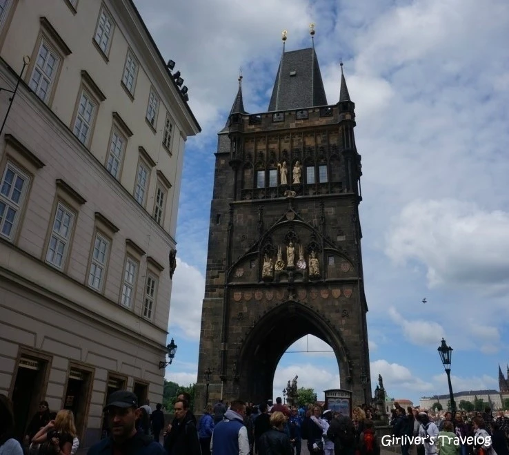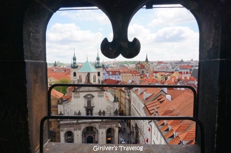 카를 다리의 양쪽에는 탑이 있다. 전망이 좋다는 구시가 쪽 탑으로 오른다. 천천히 계단을 오르니 탑 중간에 표를 파는 직원이 덩그러니 앉아 있다. 표를 사들고 그의 손짓대로 위로 오른다.