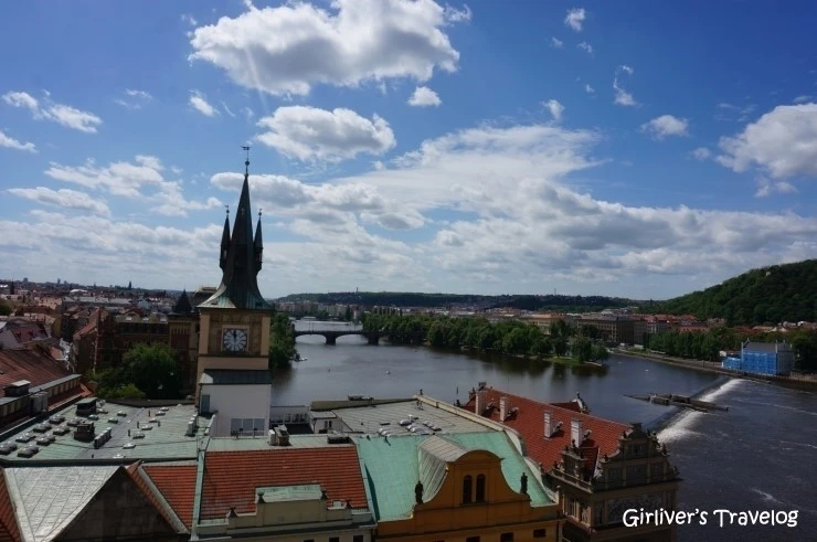 카를교와는 달리 차량이 다니는 다른 다리까지 조망된다. 다리를 건너는 수많은 사람들에 비하면 탑 꼭대기에는 사람이 거의 없다. 두어 명의 사람들이 올라와 풍경을 보다가 내려간다. 그림 같은 프라하 풍경을 거의 혼자 고요하게 즐긴다. 따뜻한 햇살과 알맞게 서늘한 바람이 풍경과 잘 어울린다.