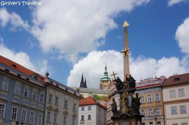 다리를 빠져나와 이어진 길을 걷는다. 지리를 잘 몰라도 사람들이 향하는 곳으로 따라가다 보니 작은 광장이 나온다. 카를 다리의 성상들과 비슷한 조각으로 정교한 무언가를 상징하는 기념비가 우뚝 서 있다. 여행자는 장남이 되어 코끼리를 더듬고 지나갈 뿐, 거리마다 숨어있는 역사를 만나려면 프라하 여행은 며칠로는 어림도 없을 것이다. 뒤로 프라하성의 성 비투스 대성당의 첨탑이 보이는 것만으로도 반갑다.