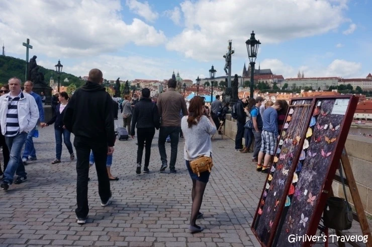 탑에서 내려와 카를 다리를 걷는다. 양 옆의 성상들은 체코의 수호성인들이라고 한다. 몇 걸음을 걷고 나면 나타나는 십자가 아래의 성상들이 이 다리를 하나의 예술품으로 보이게 하는데 일조한다. 여행자들은 걷다가 그 조각상 아래서 기념사진을 찍고 강을 바라본다. 어느 도시에서보다 카메라를 손에 들고 있는 사람이 많다. 그냥 보고만 있기에는 너무 아름다운 풍경이 자꾸 셔터를 누르게 한다. 프라하 풍경을 담은 그림이나 액세서리를 팔고 음악을 연주하는 사람들도 많다. 카를 다리는 그 자체로도 예술작품이지만 동시에 예술가들의 전시장이기도 하고 연주회장이기도 하다.