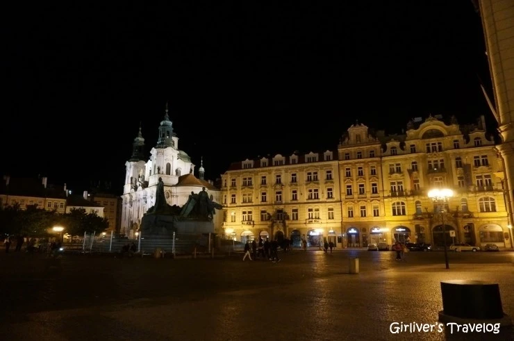 토니와 메일 주소를 교환하고 작별인사를 하고 나오니 해 넘어간 광장에는 빗방울이 떨어지고 있다. 오언니를 숙소로 데려다주고 돌아가는 길에는 이미 어둠이 깔려있다. 빗방울이 떨어지지만 옷이 많이 젖지는 않을 정도라서 광장을 한 바퀴 돌아본다. 오후에 운겔트로 들어갔던 골목 옆 틴성당에 아름다운 조명이 비춘다.