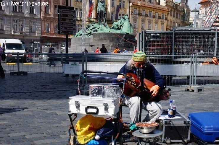 다시 돌아온 구시가의 얀 후스 동상 앞에서는 진짜 집시처럼 보이는 노인이 처음 보는 악기를 연주하고 있다. 버스킹을 하면서 CD를 파는 음악가들이야 카를 다리건 구시가의 광장이건 많지만 특이한 음색의 구슬픈 음악은 사람들의 발걸음을 멈추게 한다.