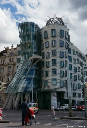 바츨라프 광장에서 나로드니 거리를 따라 걸으면 블타바 강변으로 오게 된다. 강변을 따라 한 블록 정도를 걸으니 아름다운 건물과 대로를 달리는 자동차의 물결 사이로 희한한 건물 하나가 돌출되어 있다. 이름하여 "춤추는 빌딩(Tancici dum)"이다. 왈츠를 추는 남녀의 모습을 모티브로 지었다는 1996년 건축물이다. 지극히 현대적이고 파격적인 건물임에도 옆 건물들과 은근히 잘 어울린다.