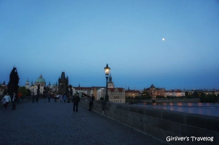 저녁이 될수록 쌀쌀해지는 날씨에 몸을 덥히려고 카페에 들어가서 다리도 좀 쉬고 일정도 정리하고 카를 다리로 나온다. 온종일 몇 번을 카를 다리에 오게 된다. 불빛이 비치는 블타바 강도 어두워져 가는 카를 다리도 이젠 정말 마지막이다.