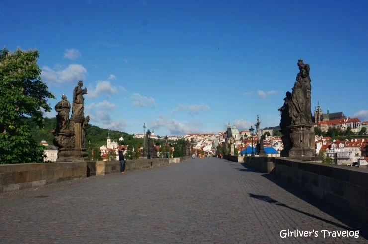 월요일 아침의 카를 다리는 의외로 인적이 없다. 며칠 동안 늘 인파 가득한 다리만 보았는데 오늘 아침의 느닷없는 고요가 너무 좋다. 체코의 세종대왕이라는 카를 4세가 건설한 카를 다리는 체코 전역에서 보내온 달걀노른자를 사암에 섞어 튼튼한 다리를 건축한 것으로도 유명하다. 사람이 별로 없는 덕분에 미술관의 조각품 관람하듯이 고딕 양식의 다리 위에 놓인 바로크 양식의 성상들을 감상하며 걸을 수 있다.