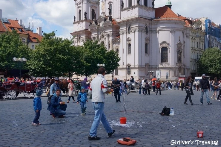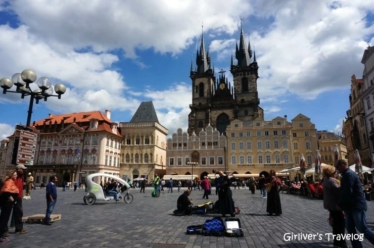 요제포브를 돌아다니며 불편하던 마음은 아름답고 활기찬 구시가 광장에 돌아오니 편해진다. 어제 비 내린 후에 활짝 갠 하늘에 핀 흰 구름은 더욱 풍성하다. 마차며 자전거며 음악을 준비하는 거리의 악사들이며 행인들, 노천카페에서 음식을 기다리는 사람들까지 모두 생기가 가득하다.