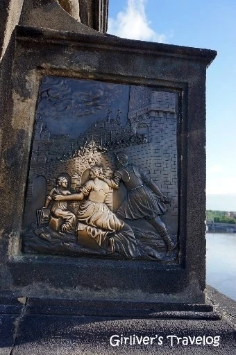 그중에서도 유명한 것은 성 요한 네포무크의 성상이다. 네포무크는 왕비의 고해성사를 알려주지 않았다는 죄목으로 왕에게 죽임을 당한 순교자다. 그가 블타바 강에 수장된 다음 날 강 위에 다섯 개의 별과 같은 광채가 떠올랐다고 하여 조각상의 그의 머리 뒤에는 다섯 개의 별이 있다.
