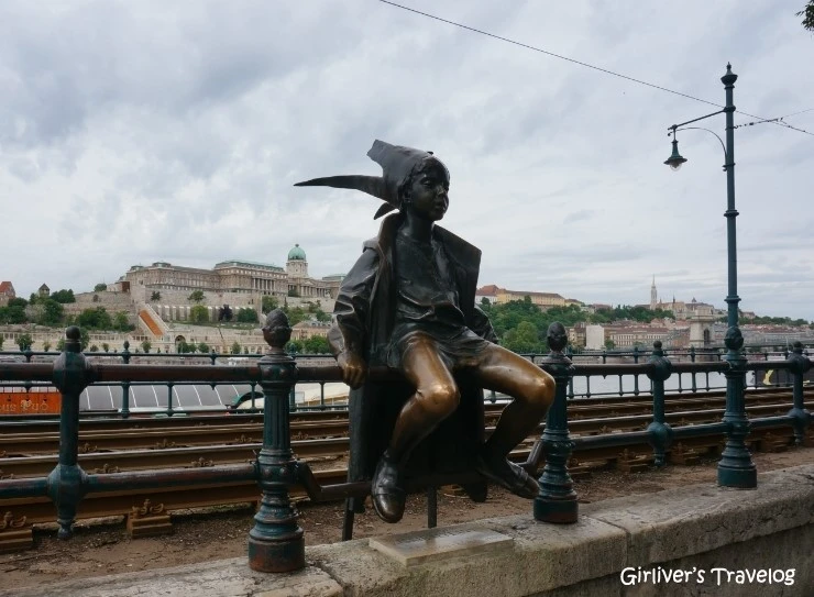 강변 옆 철로에서는 노란 트램이 오간다. 강 건너 왕궁과 지나가는 노란 트램, 구름 가득한 하늘이 한 폭의 그림처럼 보인다. 날씨가 나빠서인지 시간이 일러서인지 행인도 많지 않은 강변 트램의 난간에 피터팬 동상이 앉아 있다. 얼마나 많은 사람이 무릎을 만지고 갔는지 다리 색깔이 바랜 피터팬을 혼자 마음껏 바라본다. 피터팬 동상 뒤의 철로와 도나우 강, 멀리 부다페스트 왕궁은 배경이다.