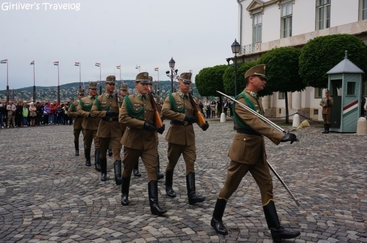 작은북을 들고 박자를 맞추는 병사와 열을 맞춘 절도 있는 행진을 하는 병사들은 한참 동안 볼거리를 선사한다. "인생만사 새옹지마"임을 여행길에서 그렇게 많이 경험하고도, 그새를 못 참고 비를 원망하던 아침의 푸념이 눈 녹듯 사그라진다. 왕궁에 들어가는 문에는 마자르 인들의 상징인 전설의 새 "투룰" 조각상이 보인다. 단체관광객들이 설명을 듣는 뒤쪽에서는 한쪽 발에 칼을 쥔 투룰이 왕궁을 내려다보고 있다.