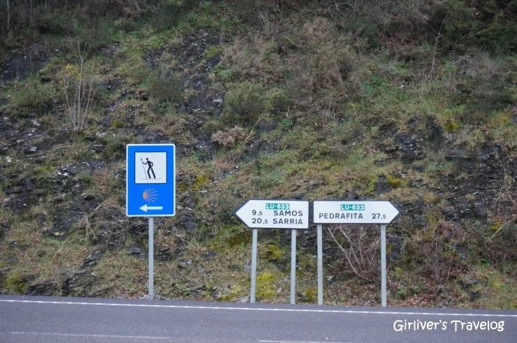 이곳에서 사리아(sarria)로 가는 길은 사모스(samos)와 산실(san Xil)을 지나가는 루트 중에서 선택할 수 있다. 대부분의 순례자는 산실로 가는 길을 많이 선택한다는데, 우리는 5km정도 더 걷는 사모스의 수도원 방향으로 가기로 한다. 이제 거리는 걷는데 아무런 제약이 되지 못한다.