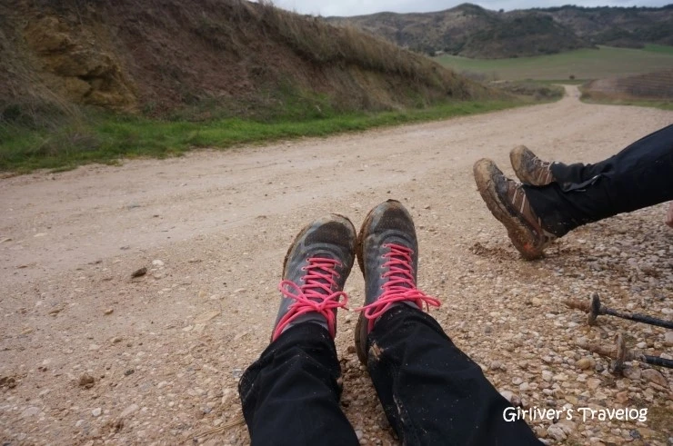 쉴 곳이 없어서 계속 걸을 수밖에 없기도 했는데 뜻하지 않게 공터의 벤치를 발견한다. 목적지에 거의 다 왔으니 다리나 주무르면서 케이와 진을 기다려 보기로 한다. 곧 케이가 도착하고 다른 순례자들 몇 명이 지나가고 나서도 한참이나 지나고 나서야 진이 나타난다. 길이 들지 않은 등산화가 속을 썩인 모양이다. 휴식 후 셋이 함께 출발한다. 이제 비는 완전히 그쳤고 목적지인 로스아르코스(Los Arcos)는 저기 보이는데 갑자기 발목이 이상하게 통증이 느껴져 걷기가 불편하다. 케이와 진이 앞서가고 오래 쉬었던 나는 오히려 뒤쳐진다. 걷는 김에 쉬지 말고 계속 걸어야 했을까? 족히 한 시간은 쉬었는데 갑자기 발이 왜 이렇게 불편한지 모르겠다.