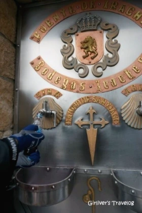 왼쪽 마개를 돌리면 와인이 나오고 오른쪽은 물이 나온다. 아침이긴 하지만 작은 페트병에 담아 와인을 마신다. 까미노에 오기 전 들은 얘기로는 한 여름에 순례자가 많을 때는 이곳의 포도주도 남아나질 않는다고 한다. 사람 없는 계절에 걷고 있는 나야 상상이 가지 않는다. 3월 초순인 지금은 어느 곳을 걸어도 여유가 있어 참 좋다. 걷다보면 순례자가 먹을 물을 담아가는 샘이 있는 마을이야 있지만, 와인샘이라니, 신기하다. 물론 여기에는 예수님의 피와 살이라는 종교적인 의미가 담겨 있을 것이다. 그러고 보면 세속적으로 생각하는 "술"이 공짜인 게 아니라, 목마른 순례자들에게 "포도주"로 제공되는 나눔과 배려가 바로 이곳의 와인샘이다.