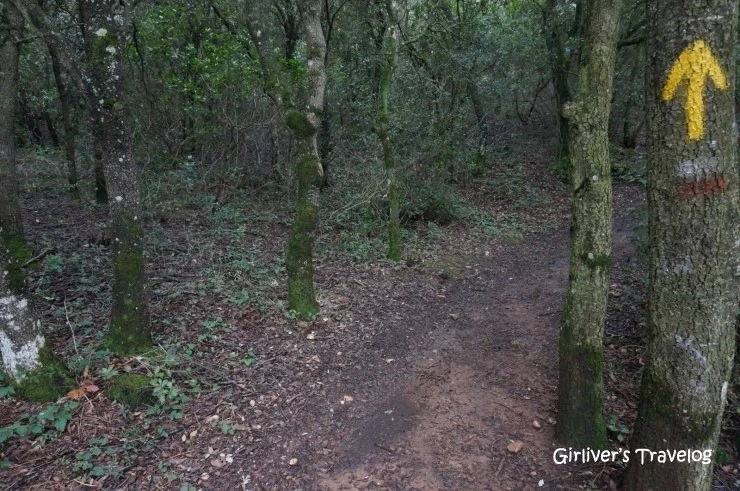 숲길로 접어든다. 비가 뿌리다가 해가 나오다가 하는 날씨라서 계속 우비를 입은 채 이동한다. 빗방울에 촉촉해진 숲은 엄청난 양의 피톤치드를 뿜어내고 있는 듯, 순례자의 기분은 절로 상쾌해진다. 숲길이 이어져도 노란 화살표가 길을 잃지 않게 지켜준다. 앞서간 사람들의 발자국으로 만들어진 오솔길 또한 그렇다. 누군가의 발자국을 되짚으며 가고 있다. 그 발자국은 이십 분 전에 지나간 사람의 것일 수도 있고 일 년 전, 혹은 수 세기 전 어떤 순례자의 것일 수도 있다. 순례자들이 걷고 걸어서 다지고 다져진 길에 내 발자국을 하나씩 보태며 걷는다.