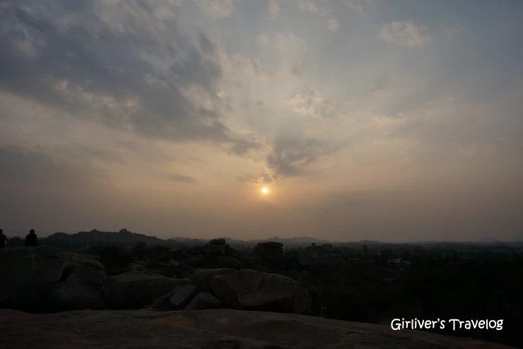 유명하다는 선셋 포인트에는 이미 많은 사람들이 올라와 있다. 돌로 만든 유적을 바라보며 돌로 된 언덕을 올라 돌계단을 지나 바위산을 오른다. 딱히 할 일 없는 함피에서는 석양을 바라보는 일이 굉장한 의식이 된다. 오늘의 태양은 소임을 다하지만 내일은 내일의 태양이 떠오를 것이다.