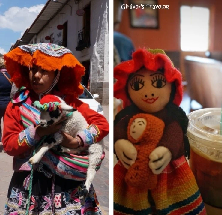조카에게 선물하려고 산 작은 페루 인형과 아까 만난 민속의상을 입은 페루 처녀의 모습이 똑같아서 웃음이 난다. 민속의상을 입고 어린 야마를 들고서 1 솔(약 400원)을 받고 사진을 찍어주는 게 그 처녀의 직업(?)이다.