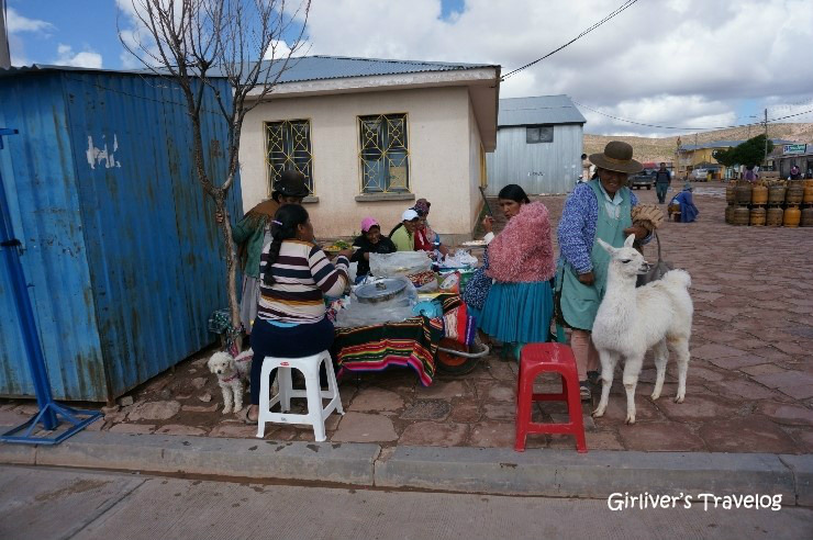 우유니 소금사막의 감동의 여운이 가시지 않은 아침, 볼리비아의 아름다운 자연 풍광을 보러 출발한다. 우유니 사막투어 이틀째 여정이다. 고원지대의 작은 마을에 들러 군것질 거리와 아이스크림을 사 먹는다. 잠깐의 쉼이지만 인디오들과 흰 야마와 개가 어울리는 마을 풍경이 참 좋다. 작은 마을과 소박한 집들, 이 황량한 고지대의 마을에 들러 과자를 사는 사람이 하루에 과연 몇 명이나 될까?