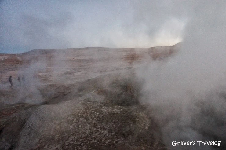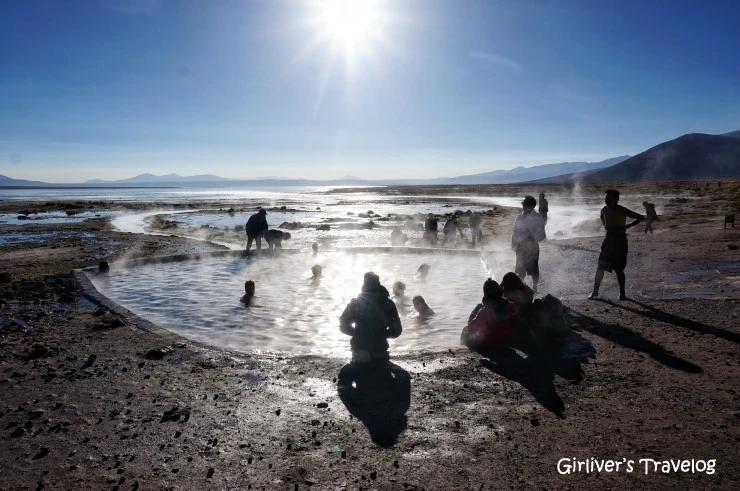 해발 5,000미터 화산지대의 간헐천에 다다른다. 아직 오전인데 벌써 도착해 몸을 담그고 있는 여행자들도 있다. 잠을 못 자서 부은 얼굴로 바지만 걷어 올린 채로 가장자리에 앉아 발을 담근다. 아침 고지대의 한기가 온천의 열기에 천천히 사그라진다.
