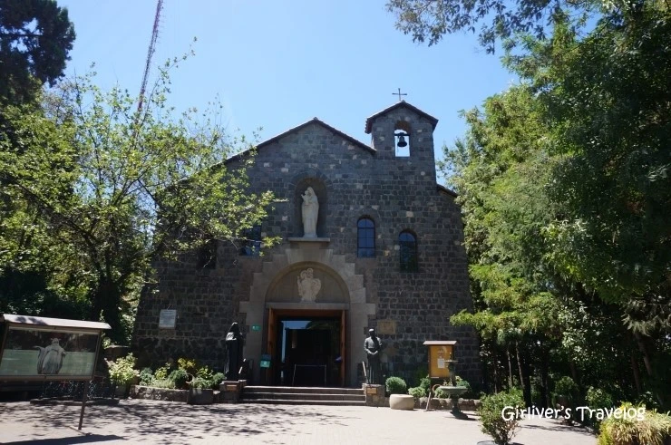계단의 끝 가장 높은 곳에는 하얀 성모상이 산티아고 시내를 굽어보고 있고 거대한 도시가 한 눈에 보이는 언덕 위에 소박한 교회가 있다. 들어갈 수 없는 아담한 교회 마당에서 서성이는 기분이 참 정갈해진다.