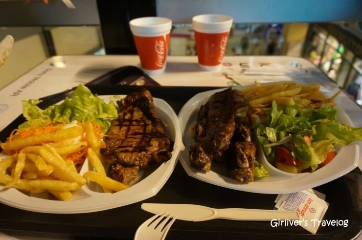 감자칩과 샐러드와 함께 나오는 소고기는 진짜 맛도 좋다. 안심과 등심 정도를 시킨 것 같은데 2인분으로 셋이 배가 부르다. 일회용 포크 나이프이지만 스테이크는 질이 좋다. 맛있고 싼 점심을 먹고는 오랜만에 아이쇼핑도 실컷 해본다.