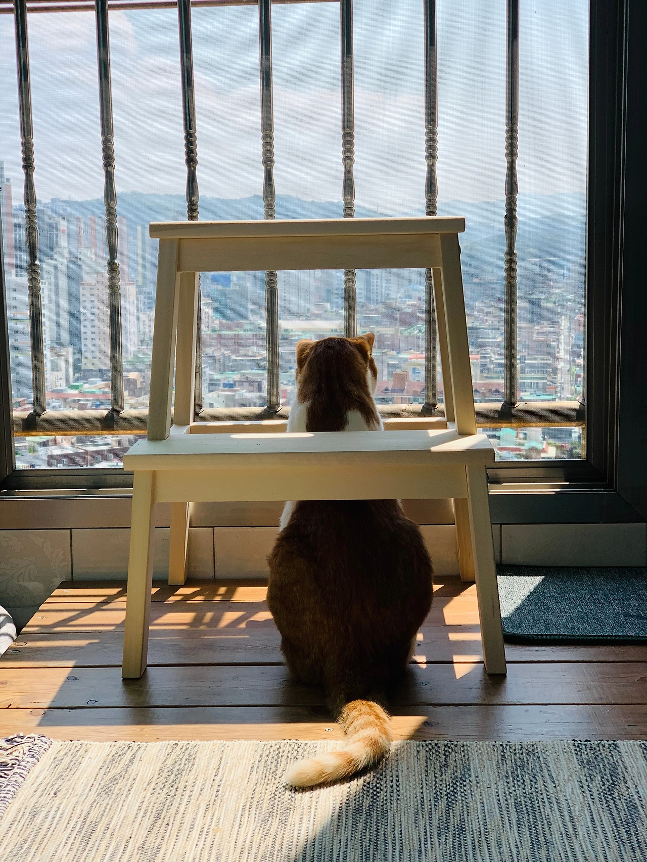 연휴 때 김쿠우씨가 베란다에 앉아있는 걸 봤다. 작은 소리에도 화들짝 놀라서 작은방 밖으로 나오지도 못하던 녀석이 제법 많이 진출했다. 이제는 베란다에서 밖을 내다보는 것이 일종의 취미처럼 종종 자리를 잡고 베란다 밖을 구경한다. 이 작디작은 녀석도 새로운 삶에 적응하려고 부단히 애쓰고 있는 게 분명하다.