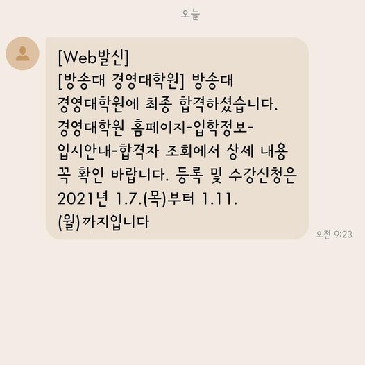 한국방송통신대학원 MBA에 합격했다.