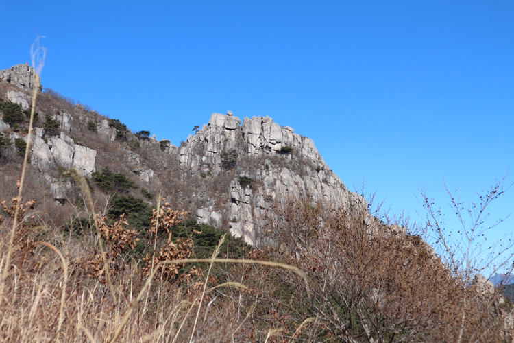 내가 오른 길은 4 망루로 향하는 곳이었다. 청명한 하늘과 기암절벽이 보이는 곳에 다다르자 이제는 말라버렸지만 가냘픈 손을 흔드는 억새를 만날 수 있었다.