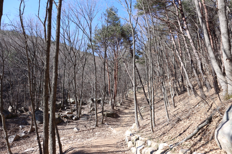 날이 추워서일까. 산 길에는 사람 하나 보이지 않고 앙상한 나뭇가지들만이 쓸쓸히 서 있을 뿐이었다. 모두 아침잠이 깨지 않은 것인지 미동조차 없는 나무는 겨울 내내 모든 수분을 빼앗기고 비썩 말라 있었다.