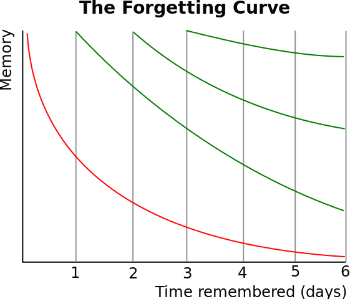 강사들이 원하는 것은 장기기억이다. 에빙 하우스의 망각 곡선에 따르면 정보를 보존하려는 노력이 없을 때 하루가 지난 후에는 거의 절반 이상 잊어버리게 된다. 그러나 다음 날 다시 반복하게 되면 정보의 손실이 감소하고, 이것이 지속적으로 반복되었을 경우 장기 기억으로 보존된다.