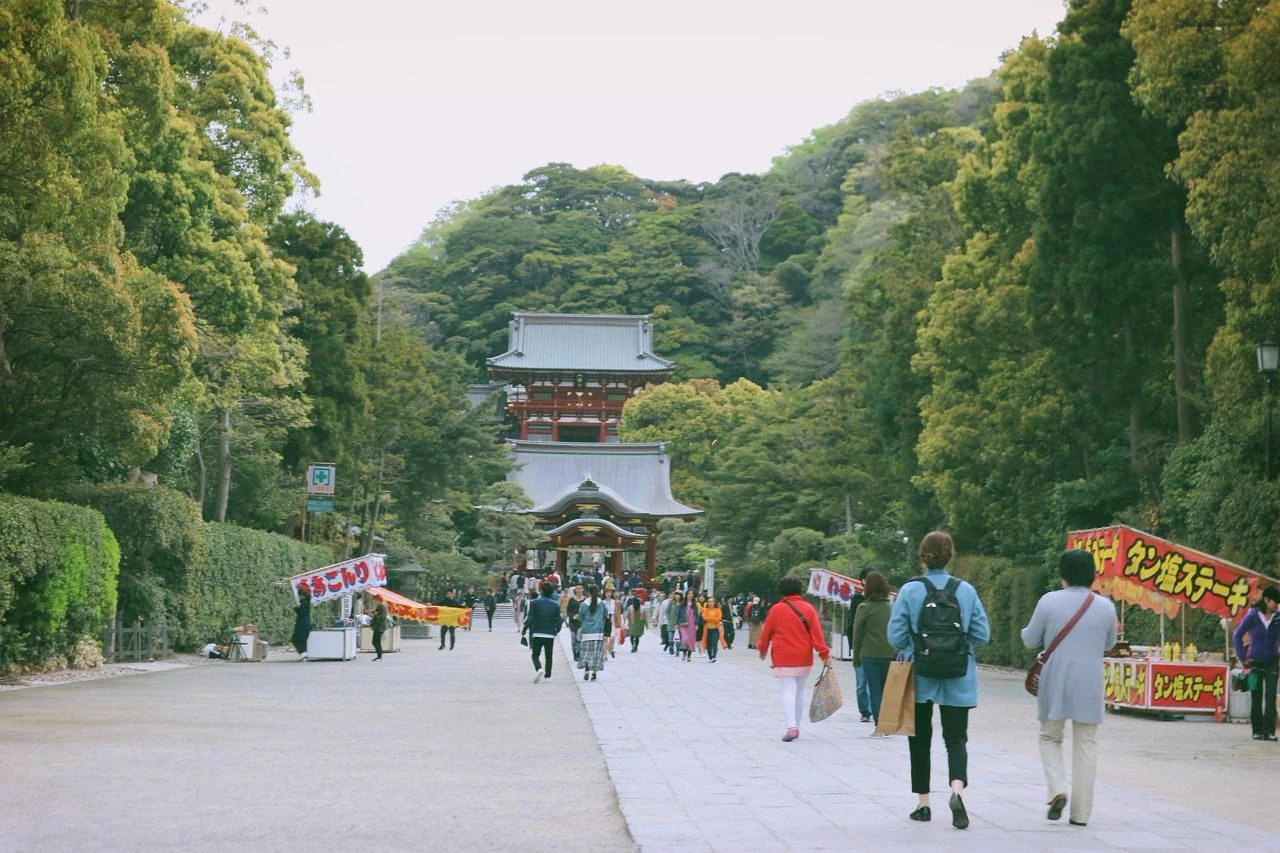 숙소에 짐을 맡긴 후 우리는 버스를 타고 가마쿠라 역에서 내렸다. 역에서 몇 미터 떨어지지 않은 곳에 붉은 도리이(鳥居)가 서 있다. 신의 영역과 일반 세계의 경계를 나눈 도리이, 그곳에 발을 내딛으면 신사로 향하는 코마치도리를 가득 채운 사람들의 모습이 시야에 가득 찬다. 가마쿠라의 코마치도리는 에도시대부터 서민 상점가로 그 명맥이 후대까지 이어져 오고 있다. 작은 수제 물품을 파는 곳부터 기념품과 다양한 간식거리가 즐비해 있어, 가마쿠라의 상징인 쓰루가오카 하치만궁을 찾는 사람들의 즐거움을 더해준다.