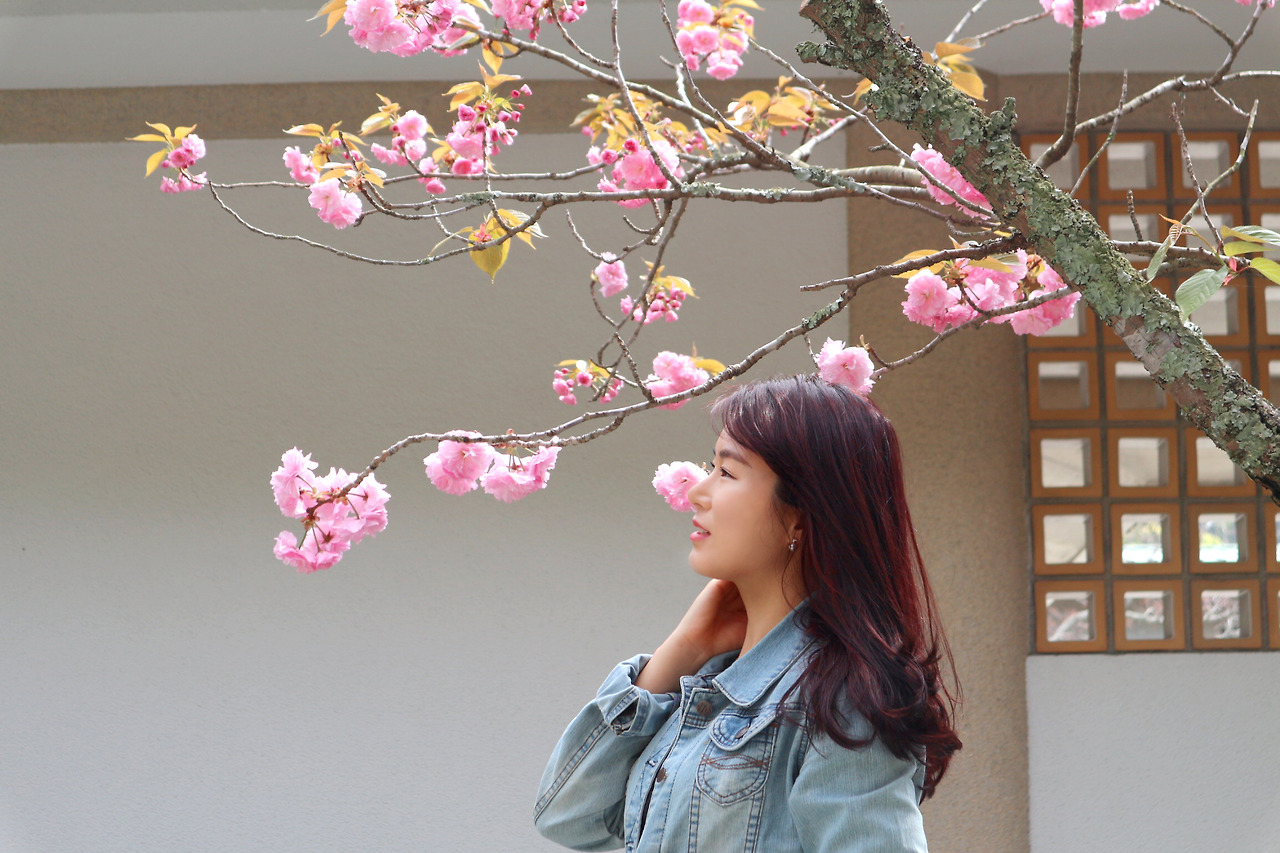 아쉬운 마음을 채 숨기지 못한 채 나와 은정이는 경내를 한바퀴 돌았다. 아! 저 멀리 가느다랗게 뻗은 가지 위로 느즈막히 피어난 겹벚꽃이 보인다. 우리는 화색을 띄며 겹벚꽃 앞으로 달려갔다. 풍성하지도, 흩날리지도 않은 듬성듬성 심어둔 겹벚꽃이다. 우리는 탄성을 지르며 계속 사진을 찍어댔다. 순간 나는 셔터를 누르다 피식 웃고 말았다. '꽃이면 뭐든 좋을 텐데’라고 해놓고선 눈 앞에 피어 있는 꽃을 보고 ‘벚꽃이 있었으면 좋았을 걸.’이라는 말을 무심결에 내뱉았기 때문이다.