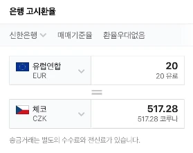 30초 후 그는 나에게 푸른 100 코루나 지폐 3장과 영수증을 들이밀며 사인하라고 재촉했다. 정신이 없어 사인하려는 도중에 300 CZK가 적힌 것을 보고는 혹시나 하는 마음에 네이버에 환율을 계산해봤다.
