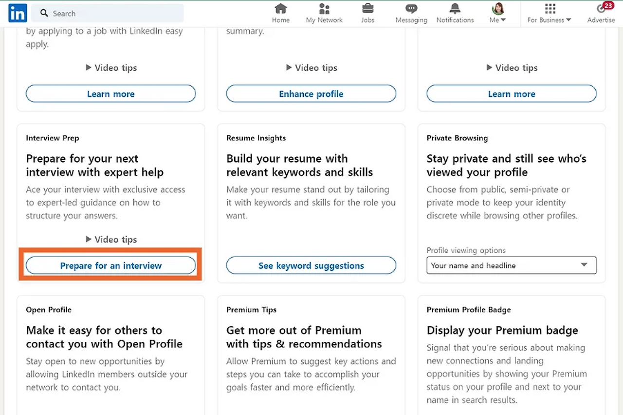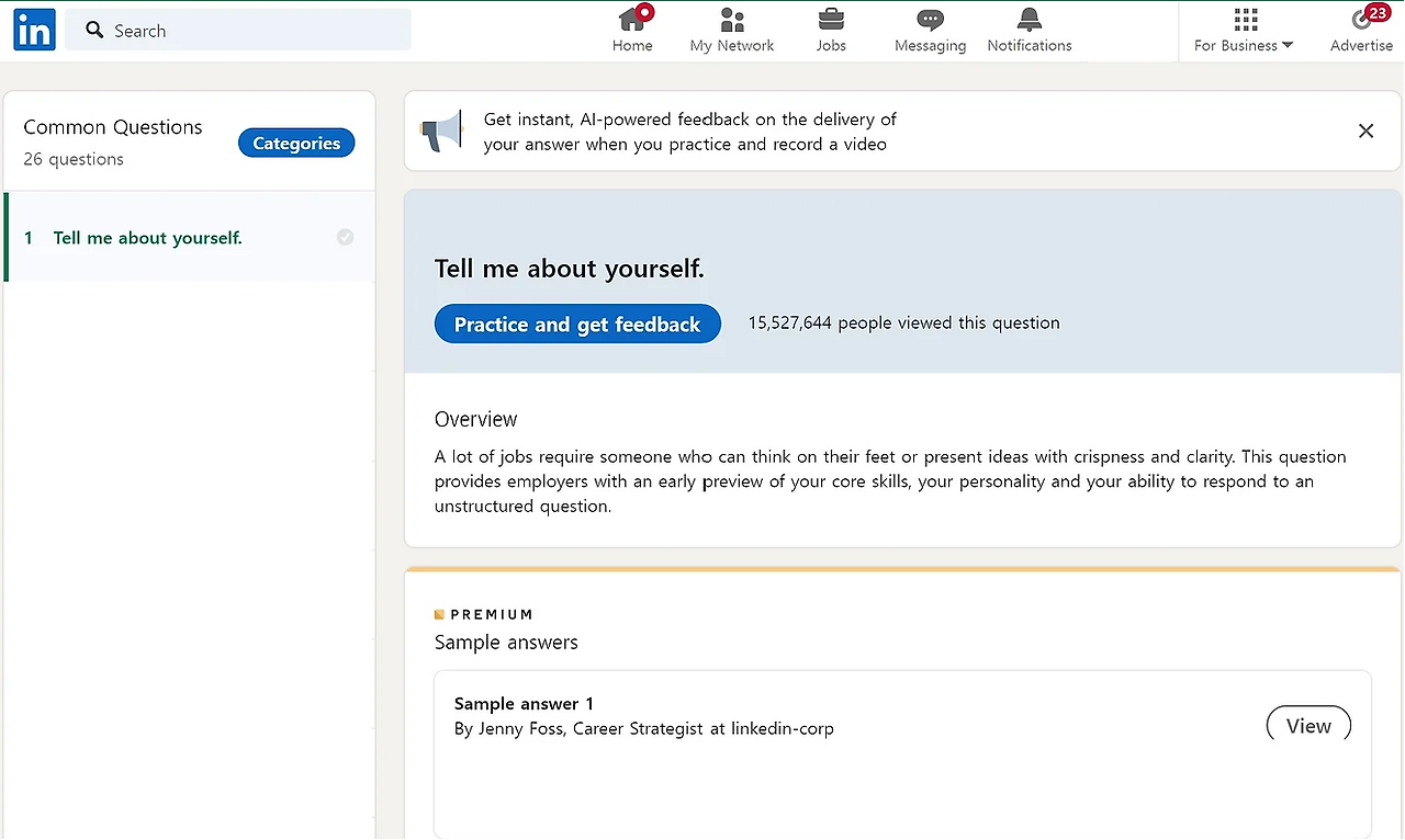 링크드인 프리미엄은 유료 서비스이지만, 해외 취업이라는 꿈을 실현하기 위해 투자하는 비용으로는 큰 금액이 아니라고 생각합니다. 이 중에서도 면접 준비 시에 큰 도움을 받았던 컨텐츠를 소개합니다.