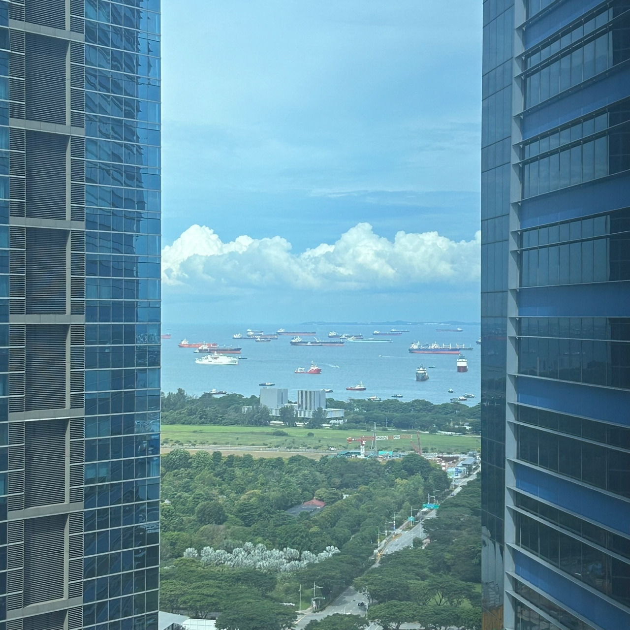 그래서 어제는 업무 시간 중 일부러 짬을 내어 사무실 구석에 앉아보았습니다. 저희 사무실에서는 바다가 보인답니다. 물론, 빌딩 숲을 헤치고, 무수한 선박을 못 본 척 하면서 바라봐야 하지만요. 어쨌건 저에게는 숨구멍 같은 장면이지요.