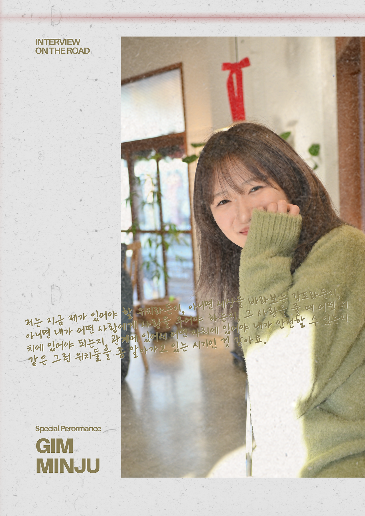 A. 9월 달 즈음에 혼자서 제주도를 다녀온 적이 있었어요. 혼자서 여행을 처음 해보고 왔는데 되게 자유롭더라고요. 덴마크에 갔다 왔던 것처럼 저답게 있을 수 있고, 타인의 시선을 신경 쓰지 않아도 되고, 내가 행복한 일들을 내 템포에 맞춰서 할 수 있는 게 감사하게 느껴졌어요. 그 뒤로 제주도를 가거나 부산도 혼자 가보고 싶다는 생각이 들었어요. 그리고 제가 멜론 소다랑 푸딩을 되게 좋아하거든요. 나중에 제가 카페를 차리게 되면 멜론 소다랑 맛있는 카페를 잘 꾸려보고 싶다는 생각이 있어요.