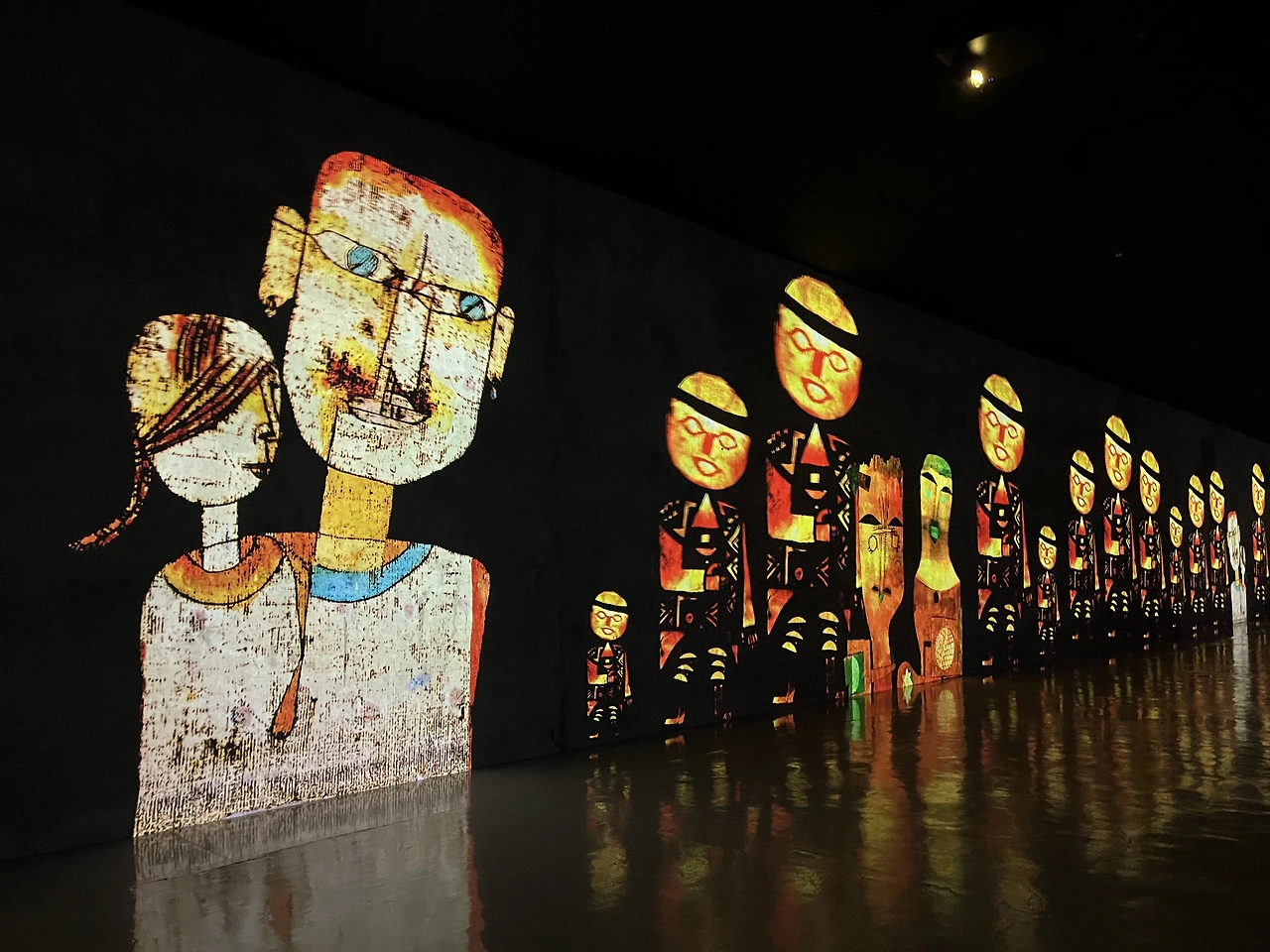 이 날 전시는 칸딘스키의 '추상 세계와 음악적 영성', 파울 클레의 '음악을 그리는 회화', 그리고 '제주·죽음·신앙·자연의 순환'을 함께 엮은 장민승 프로그램이었다. 흐르는 장면과 음악을 따라 공간을 걷고 머물며 몸으로 체험했다. 50분 동안 벽과 바닥, 천장 전체에 영상이 쏟아졌다. 어지러울 정도였다.