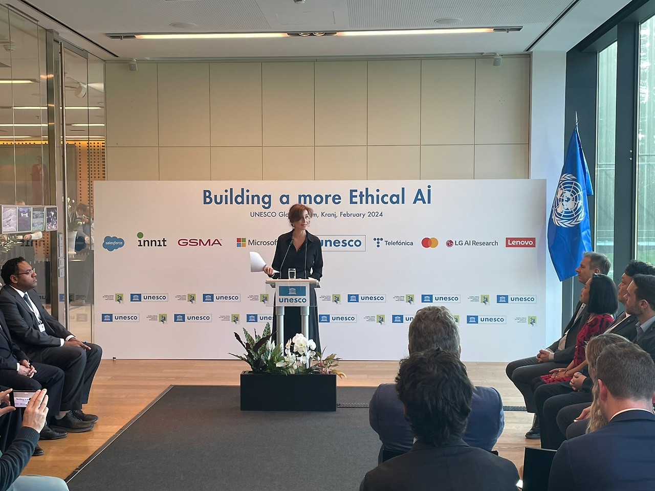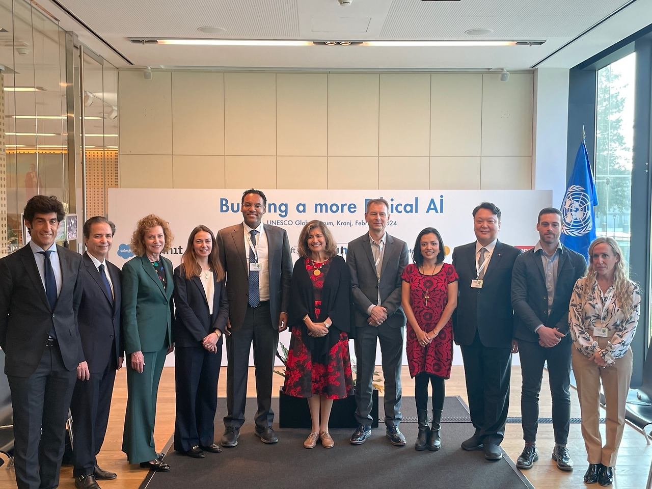 AI 윤리는 정부의 역할도 중요하지만 본질적으로 기업의 참여 없이는 실현되기 어려운 주제다. 유네스코 역시 이러한 문제의식 아래, 유네스코 AI 윤리 권고의 가치와 원칙에 기반하여 AI 윤리를 선도적으로 이행하기 위해 노력하고 있는 글로벌 테크 기업들을 초청하여 '유네스코 - 민간기업 AI 윤리 공동성명'을 발표했다. 이번 성명에는 LG AI연구원과 Microsoft, Salesforce, Mastercard, GSMA, INNIT, Lenovo Group, Telefonica가 참여했다.