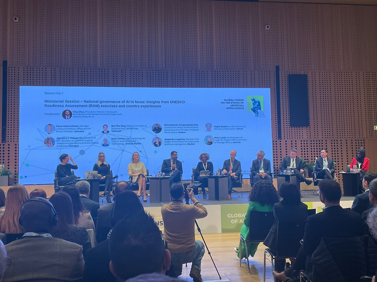 유네스코 AI 윤리 글로벌 포럼 첫째 날(2.5)의 주요 프로그램은 회원국 장관급 세션과 유네스코-민간기업 AI 윤리 공동선언, 유엔 AI 고위급 자문단의 중간보고서 발표였다. 먼저 오전 장관급 세션에는 그리스, 멕시코, 미국, 베트남, 세네갈, 오만, 에스토니아, 자메이카(가나다 순)의 정부 대표가 참석했다.
